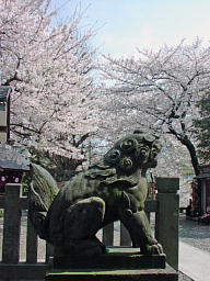 神田川と外濠の分水嶺になる坂道をうんうんと登っていくと、頂上に満開の桜に包まれて筑土八幡神社が建っていた。