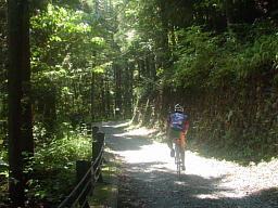 「奥多摩むかしみち」は、かつては荷馬車や大八車も往来した旧青梅街道の跡だから、自転車でも走れるかもしれないと道をチェックしながら歩いてきた。槐木(さいかちぎ)集落手前の山道がちょっと危ない感じはするものの、マウンテンバイク(MTB)なら何とか走れそうだと思っていたら、途中でロードの一団が追越していった。あんな細いタイヤでパンクしないかとハラハラしたが、山道を走り慣れているのか、写真を撮る間もなくあっという間に視界から消えてしまった。