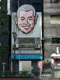 このいがぐり頭のインパクトはすごい。しかも店の名前が「顔のYシャツ」だ。靖国通と本郷通が交差する小川町交差点の角に建つと、目はこの顔に釘付になる。