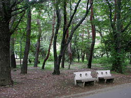 スケボーをしたり階段に腰掛けてだべったりする若者たちの姿もあってイメージは都会っぽいけれど、その向こうには深い緑が見えている。公園の案内を見ると4面の野球場を初めとしてテニスコートや競技場などの各種運動施設が充実しているけれど、森の中に隠されて、一見どこにあるのか気づかない。