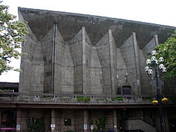 前川國男が1959年に設計した世田谷区民会館が、隣接する世田谷区役所第一・第二庁舎(1961・1969)と共に今、保存か解体かで揺れている。巨大なダムのように立ちはだかる壁面のダイナミズムや、開放的なピロティを抜けると広がる中庭空間など見所は多いのだが、コンクリート打ちっ放しの建物はかなり傷んでいて、あばたのように残る補修の跡や耐震工事で追加された柱などが痛々しい。