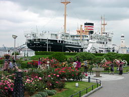 今日は山下公園へバラを見に行ってきた。氷川丸前の花壇では今がちょうどバラの見頃で、クラクラするような香りがあたりに立ちこめている。