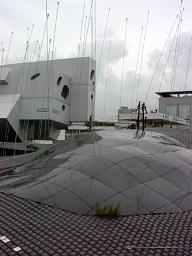 ビッグサイトやテニスの森がある有明と、いつも賑やかなお台場の真ん中あたり、真空地帯のように取り残された夢の大橋のたもとに不思議な建物を見つけた。ソリッドな外観には似つかわしくない大きな温泉まんじゅうのような茶色い物体が屋根の上に載っている。