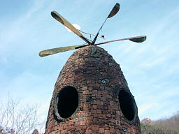 煉瓦を積んだように見える外壁には、様々な模様や文字が浮彫になったプレートが貼付けられており、焼き物教室の作品集といった感じだ。