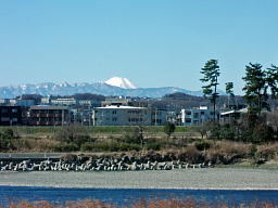 土手にあがってみると、多摩の横山の向こうに丹沢山塊を従えた富士山がきれいに見えた。時は遷り、まわりの景色も人々の川とのつきあい方も変わっていくけれど、晴れた日には、こうして富士山を遠くに望んでその美しさにため息をつく。そのことだけは、昔も今も変わらない。