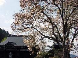 ハクモクレンから少し下ったところには、若々しい桜が陽を浴びて輝いている。やがてこの桜が潔く花びらを散らす頃に、ハクモクレンもその花をぽとりぽとりと落としていくのだろう。
