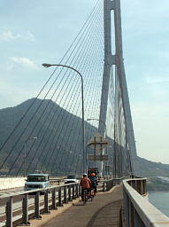 橋桁を支えるケーブルが車道と自転車道の間に張られているので、海を見ながら走るときに視界を邪魔するものが無くて開放感がある。空を飛ぶように走る気分は最高だ。