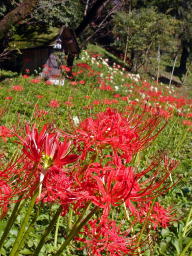 薬師池公園に保存されている旧永井家住宅の周りで彼岸花が咲いている。ここに田んぼは無いけれど、茅葺屋根が黄金色の稲穂が一面に広がる景色を連想させる。その絵に真っ赤な彼岸花がよく似合う。わたしの子ども時代には、すでにこういう景色を東京で見ることはなかったけれど、DNAの奥に潜んだ記憶の風景がよみがえってくるのだろう。そんな気がした。