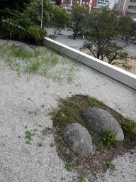 残念なことに手入れが行き届かず、純白のはずの白洲が雑草で汚れている。よりによって、お父さんの周りばかりに雑草が集中して姿が見えなくなっているのが悲しい。