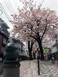 鎌倉・鶴岡八幡宮の段葛のように、道路中央の一段高くなったところを通る遊歩道を桜並木が飾っている。遊歩道も両側の道路も狭いので、桜の木は十分に枝を伸ばせなくて窮屈そうだ。