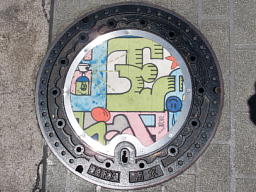 これは2019年のTENNOZ ART FESTIVALで制作された作品で、イベントが終わった後も継続展示されているものだ。通り(ボンドストリート)を挟んだ向かい側の空き地の仮囲いにも別のアーティストの作品が展示されていて、同じデザインのマンホールも設置されている。