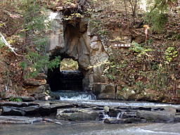 滝の上流には岩と林に囲まれた暗く静かな回廊が続き、その奥に岩を穿ったトンネルがあった。沢の水はそこから流れて来ているようだ。
