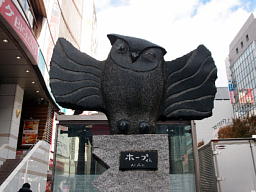 渋谷はハチ公(犬)の街。フクロウは池袋(いけふくろう)と思っていたら渋谷にもフクロウがいた。宮益坂下交差点の角、ビックカメラの前でにっこりと小首をかしげて愛想を振りまいている。