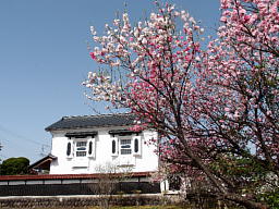 まだ作付け前の農地の周りを、ぐるりと桃の木が囲んでいる。持ち主らしい方のお屋敷には立派な蔵。その白壁に紅白の花が映える。菜の花や芝桜も咲いていて地域中の春を集めてきたような風景だ。