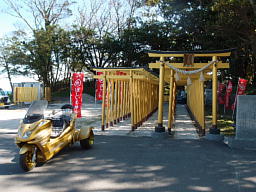 ちなみに、境内に置かれている金色のバイク(三輪)は、宮司さんの私物を記念撮影用に置いているのだそうだ。