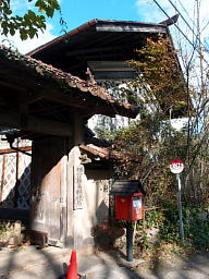 近づいていくと二棟並んだ蔵の間の門に「栃窪簡易郵便局」と書かれた大きな表札が掛かっていた。その前のポストには板葺きの屋根が載って古民家風になっている。