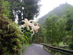 渓流沿いの山道はのどかで、ここをツールドフランスのような人たちが走り抜けるとは想像できない。涼しい渓流の音、物寂しいヒグラシの声。ガードレール越しに谷底を覗いてみると、水遊びをするニンフのようなヤマユリの花が水辺に咲いているのを見ることもできる。わたしには、勾配の緩い住宅地区間を鼻歌交じりにのんびりと走るのがちょうど良い。