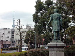 大正2年(1913)に建てられた榎本武揚像の視線の先は、江戸での最後の戦場となった上野の山に向けられている。この闘いで彰義隊はほぼ全滅、わずかな残党とその他の幕臣を8隻の軍艦に載せて榎本は函館に向かった。彼の胸には今、どんな思いが去来しているのだろうか。