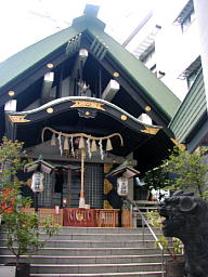そんな由緒ある神社だが、都市部からの人口流出により氏子からの収入が減少したために、社殿改築の際、その費用を捻出するために境内地にビルを建てて賃貸オフィス経営を始めたのだという。建物の設計はA&R研究設計事務所。平成6年(1994)に竣工して、翌年の千代田区都市景観賞を受賞した。