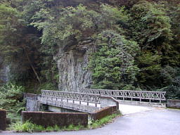 朝の早い登山者達がポツリポツリと下りてくる。すれ違いざまに「頑張ってね」などと励まされながら、20分ほどで竜王橋に着いた。この先の細倉橋に、百尋の滝に行く登山口があるのだが、今日は時間切れでここまで。橋の下を覗くと、岩陰から落ちる滝の滝壺だけが見えた。