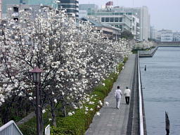 今日は汐浜運河の北側に沿った「潮風の散歩道」を彩るハクモクレンの並木を見に行ってきた。