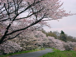 帰り道、羽村から土手の上を走ってきて河川敷へ下りる坂に差し掛かると、満開の桜が目の前に飛び込んできた。