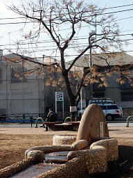 久品仏川緑道を辿って久品仏・浄真寺の裏手に着いた。道はここから木道になっている。自転車は通行禁止なので押していく。道はねこじゃらし公園へと吸い込まれていき、久品仏川の源流をイメージした水路の先にキラキラと輝く木が見えた。