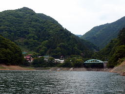 どこへ行くために架かっている橋なのかはわからないが、たぶん、わたしのように浮橋(通称ドラム缶橋)そのものを目当てに来る人の方が多いだろう。湖面を渡る涼しい風に吹かれながら、360度を山に囲まれた景色の中で味わうまったり感は格別だ。