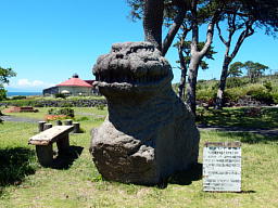 大島にゆかりの小説家・藤森成吉や画家・中村彝(つね)、流罪になった大島で伝説となった武将・源為朝らの碑に混じって、意味不明なのがゴジラの石像。傍らの説明板には「三原山の噴火口から生まれてきた」と書かれているが、そうだったかなぁ。