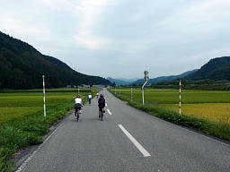 道の両側の赤白のポールは、雪が積もっても道幅を外さないための目印だ。
