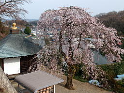 本堂の裏、墓地になった山の中腹に建つ観音堂の前にも少し小振りなしだれ桜の古木がある。観音堂からは、東に八王子市街、西に八王子城跡の眺めがいい。