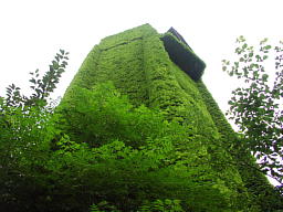 仰ぎ見る緑の塔は、陽を透かして光る葉と陰になった葉が微妙なコントラストを生み出し、吹く風がさざ波のように塔の表面を渡っていくさまが美しい。