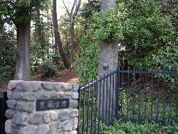 南側の福祉会館通りを小田急線・狛江駅の方に向かうと、マンションに挟まれて経塚古墳がある。向かい側は泉龍寺だ。