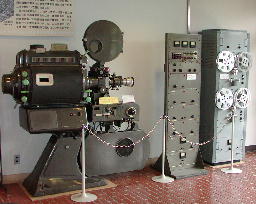 入館してすぐの1階ホールには近藤勇の生家を再現した模型と、大映から寄贈された昔の映写機が置かれている。