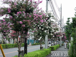 調布駅より東の品川通り沿いは、サルスベリが植えられている。木の幹がつるつるで猿も滑るからサルスベリという名は、子供の頃一番に覚えた木の名前だ。百日紅と書くように赤紫の花が夏らしくていいが、白いのもさわやかで悪くない。